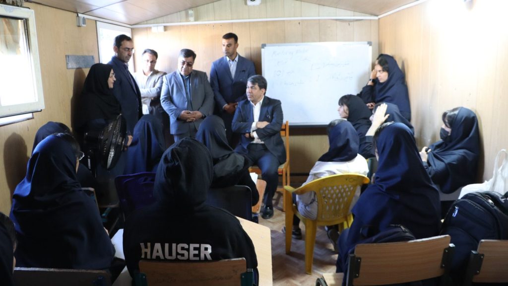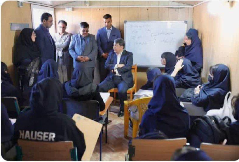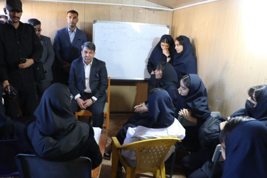 استاندار کرمان در بازدید از یکی از کلاس‌های کانکسی این مدرسه، پای صحبت دانش‌‌آموزان و دغدغه آنها از کمبود فضا و مشکلات سرمایشی و گرمایشی حین تحصیل نشست.