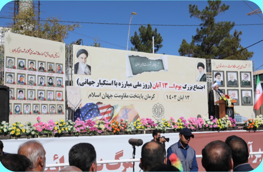 مناسبت فرا رسیدن یوم الله ۱۳ آبان مدیرکل و همکاران اداره کل نوسازی مدارس استان کرمان به همراه دیگر اقشار مردم،فرهنگیان و دانش آموزان،شرکت کردند